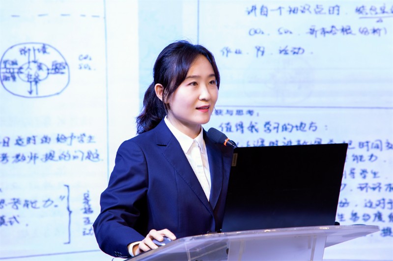 在获奖教师代表分享教学心得环节,尚姗姗老师以《追求理解的教学设计》为理论支撑,分享逆向教学设计的实践路径。她谈到,传统教学重知识传递、轻深度理解,逆向设计需先明确预期结果,再设计评估证据,最后规划学习活动,实现教学评一体化。以《人民解放战争》一课为例,她围绕“党以人民为中心,引领新民主主义革命胜利”的核心价值,设计层层递进的教学活动,结合课堂分组讨论与开放性作业,引导学生从“知道历史事实”转向“理解历史逻辑”,真正落实深度学习。