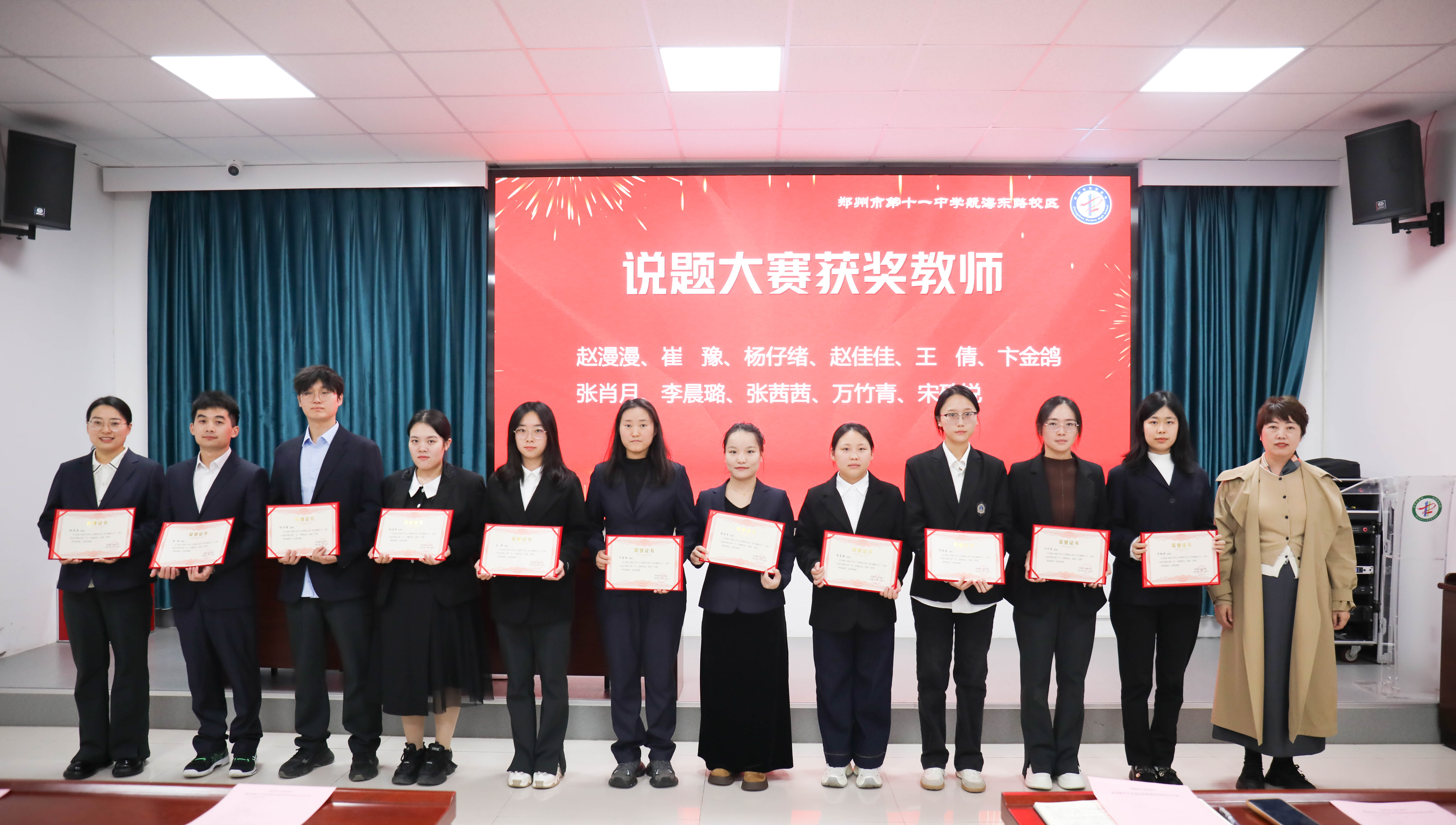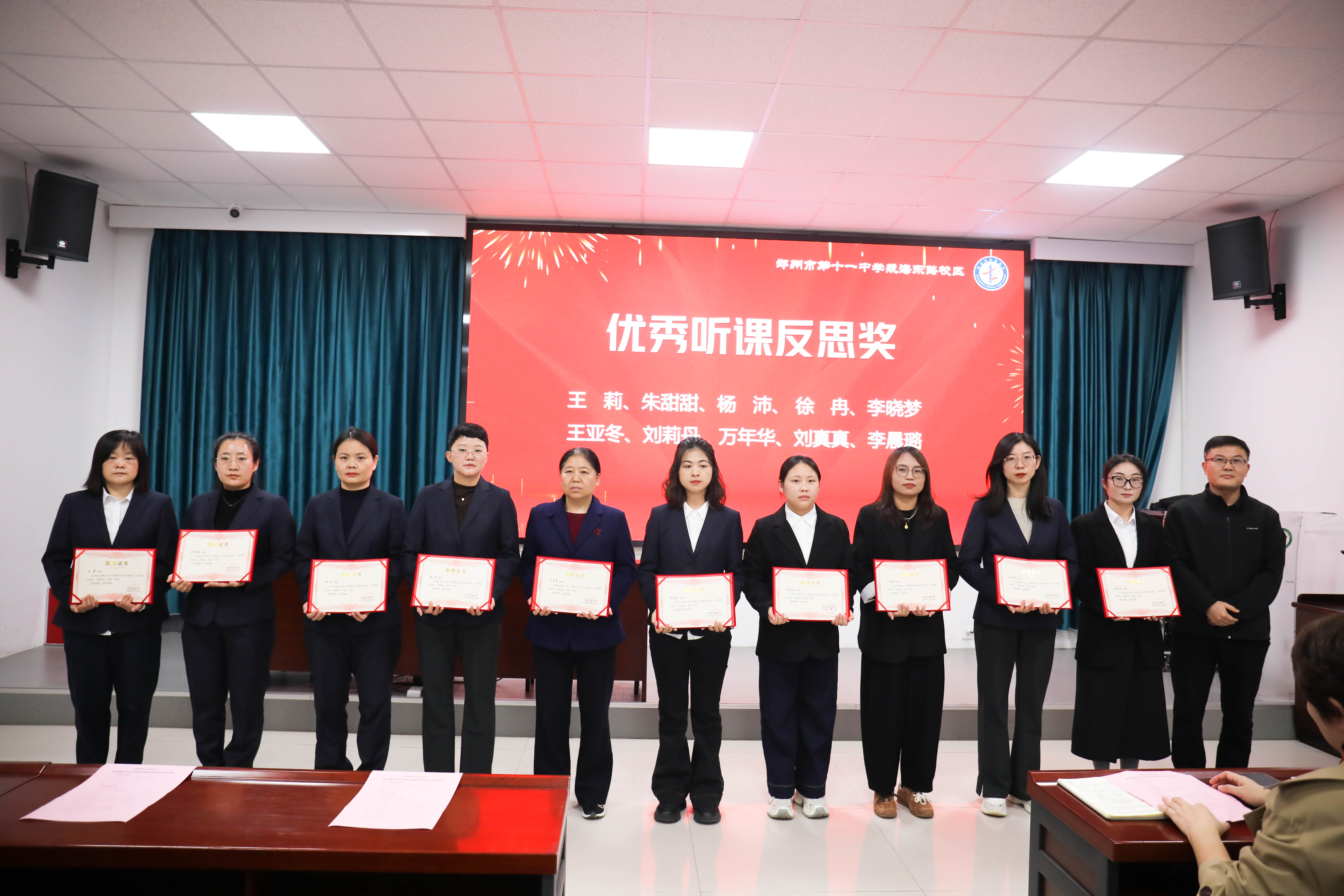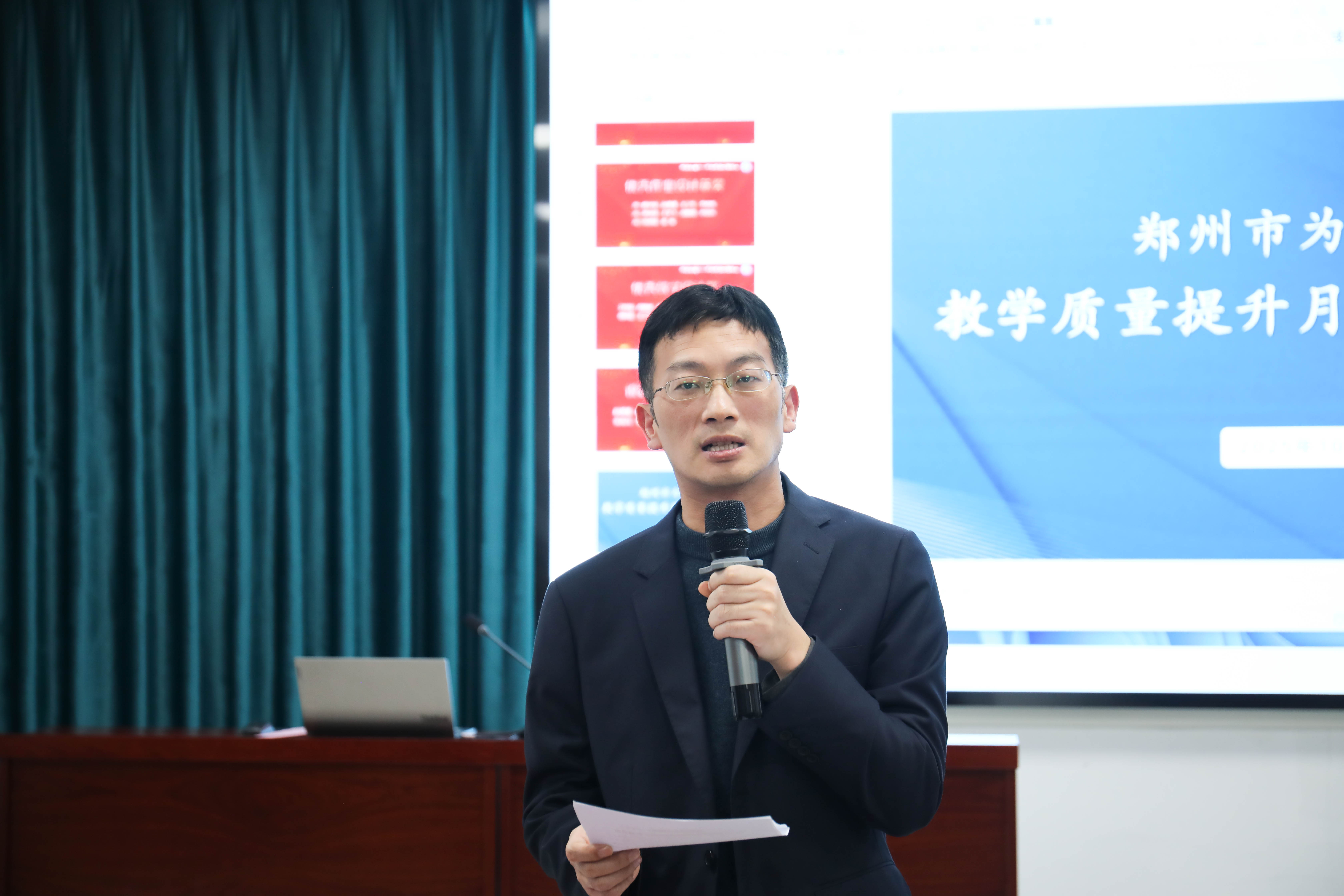 郑州市为民高中执行校长王书喜宣读《郑州市为民高中教学质量活动月表彰决定》,明确表彰标准与意义。学校领导为获奖教师颁奖并合影留念。