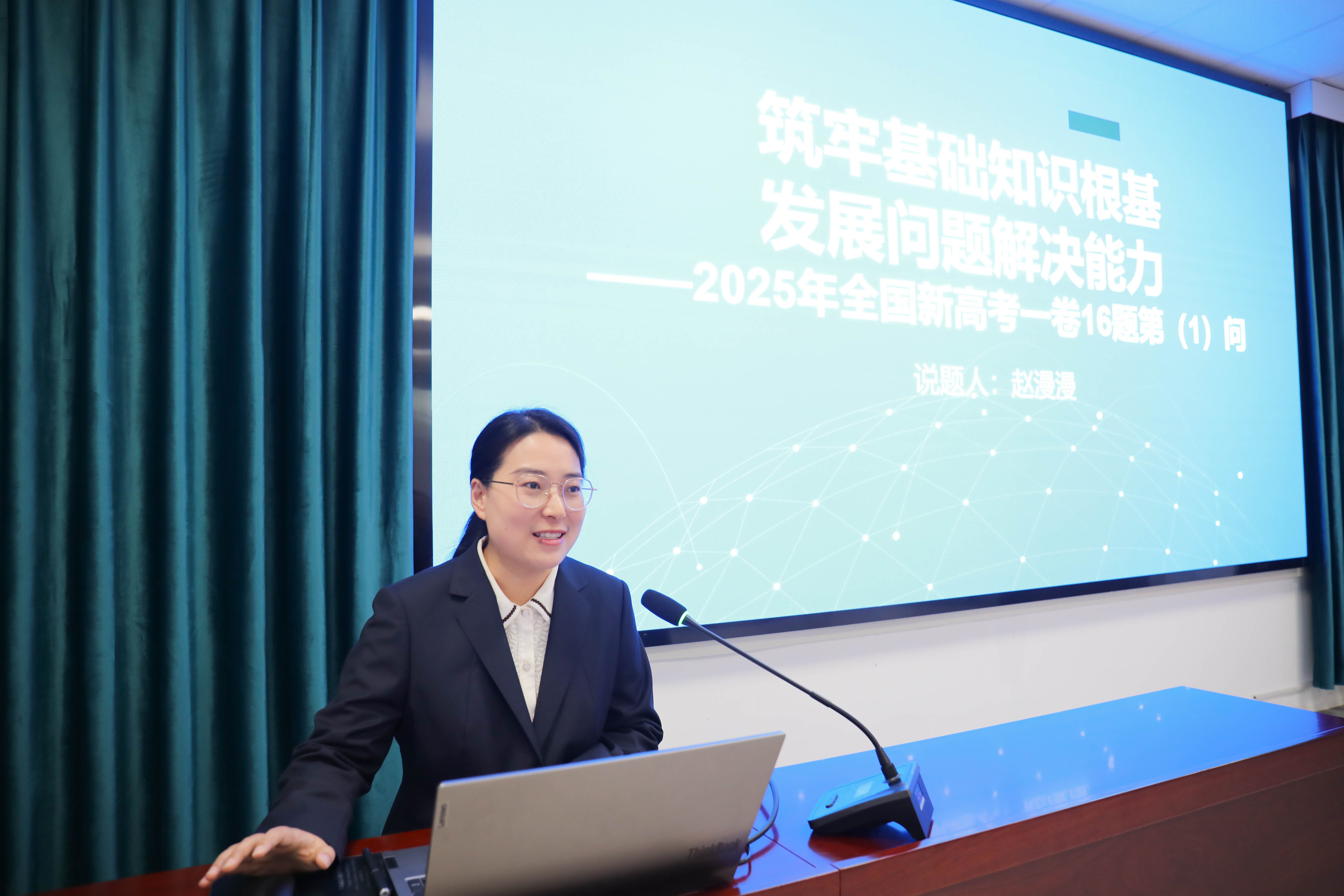 青年教师赵漫漫老师以《试题评析与重构——2025年全国新高考一卷数学16题(1)问深度解析》为主题,展现了对高考试题的系统化研究能力。她从“命题背景、解题思路、变式提升、教学启示”四大维度展开,梳理出“近二十年九次考察、近三年连续出现”的高频规律;总结“理解题意-关联知识-实践应用”的结构化路径,拆解解题关键;从“改变系数、调整递推关系、构造二次关系、设计分式结构”四个角度生成变式题,培养学生“翻译数学题干”的能力、鼓励发散思维让学生多表达多展示、强化换元、构造等核心数学思想方法,为高考复习教学的精准化开展提供了科学指导。
