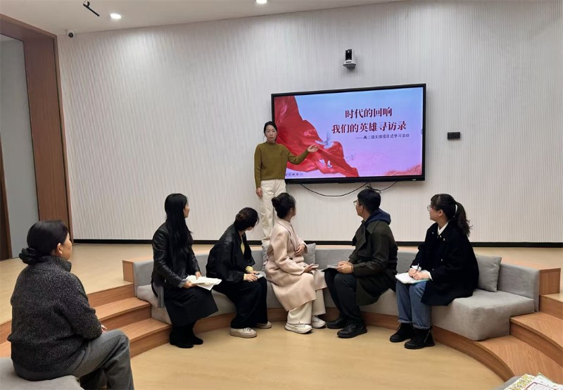 项目启动前,高二语文备课组开展了深入的教研准备。通过线上线下研讨工作坊,教师们系统学习项目式学习理念,研读《中国人民站起来了》《长征胜利万岁》《县委书记的榜样——焦裕禄》等经典篇目,精心设计“在并不广为人知的家乡英雄身上,我们如何发现、记录并传承其精神价值”这一驱动性问题。该问题既紧扣教材“理想信念”人文主题,又自然契合“中国革命传统作品研习”和“跨媒介阅读与交流”两大学习任务群要求,为学生提供了开放的探究空间。