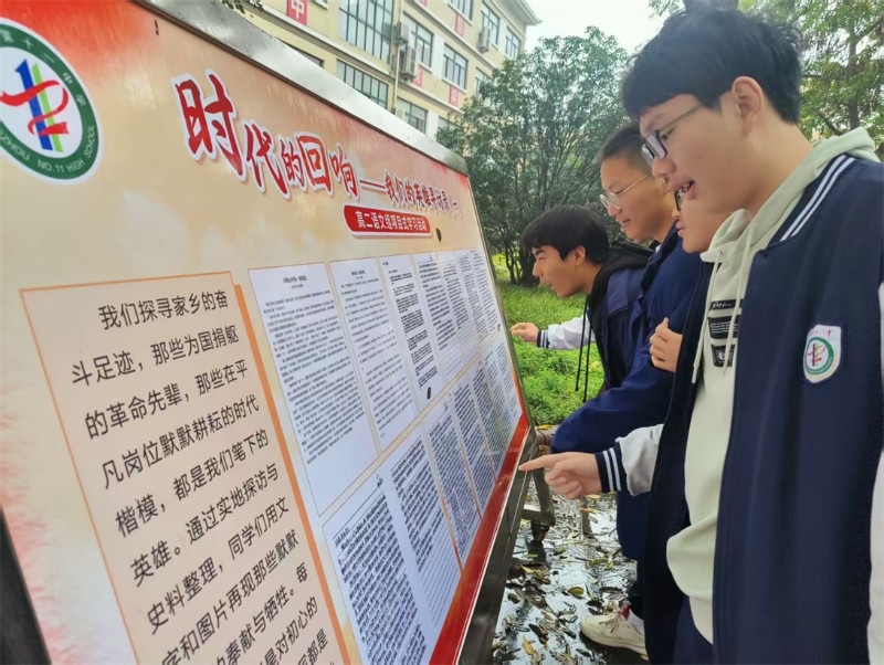 11月6日,郑州11中高二语文组开展的为期四周的“家乡的英雄——寻找身边的红色记忆”项目式学习活动圆满落幕。本次活动以语文学科核心素养为引领,通过“文本溯源—实地寻访—多元创作—成果展示”四个阶段的系统实践,引导学生在真实情境中深化对英雄精神的理解,实现了语言素养提升与家国情怀培育的双向赋能。