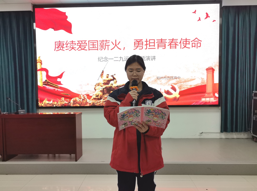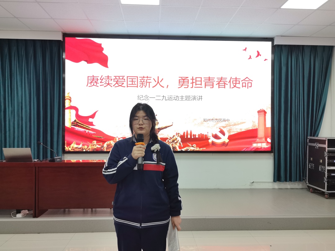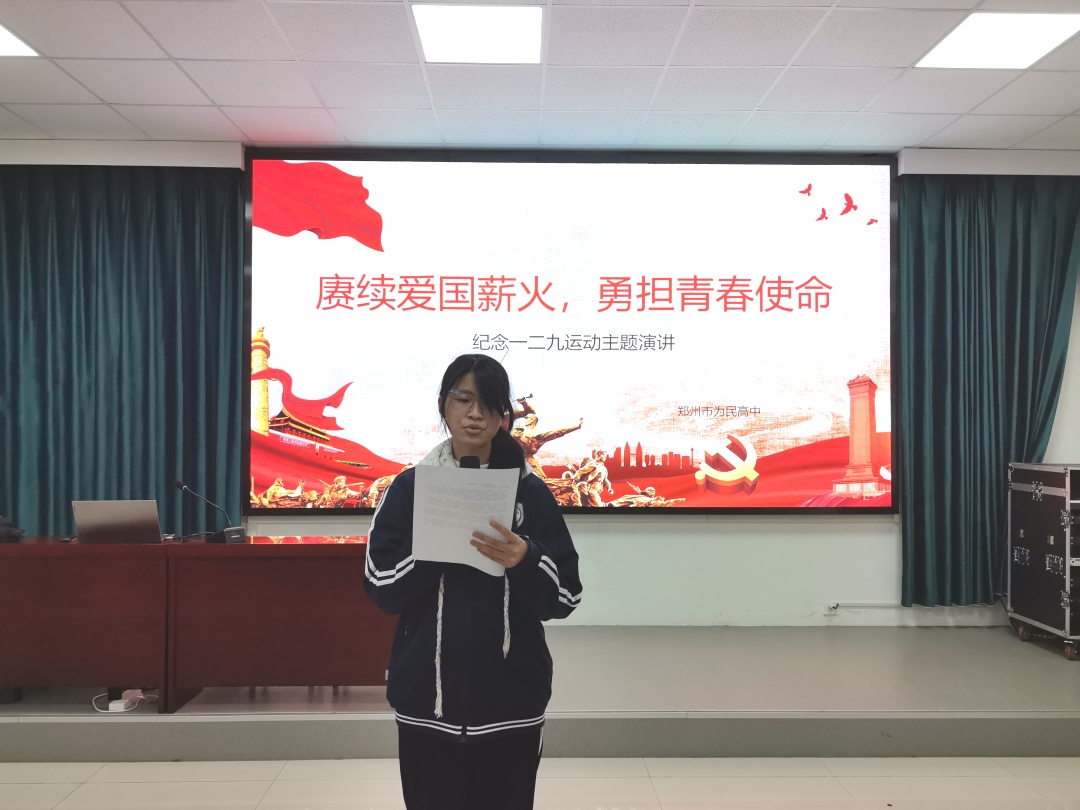 赓续爱国薪火,激扬青春之声——郑州市为民高中举办纪念“一二·九”运动主题演讲比赛