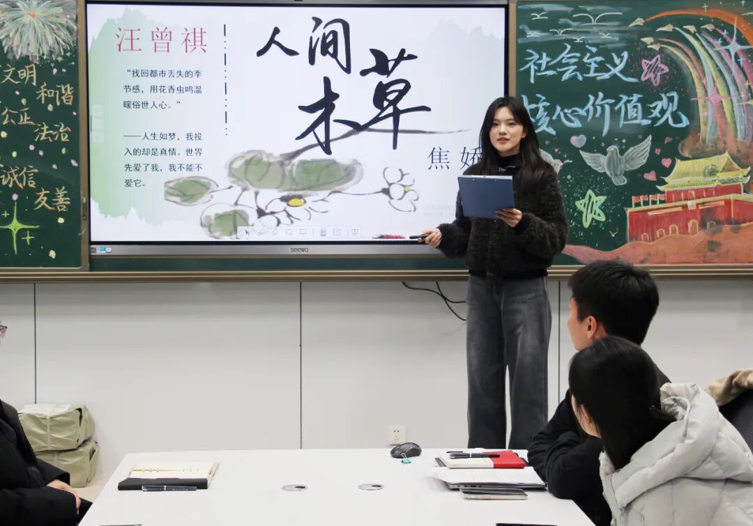 杨雨鑫老师将《毛泽东选集》中的智慧融入日常,以“空杯心态”在班级管理中注重积累;史亚楠老师则用“沃土育新苗”的比喻,诠释以耐心陪伴静待花开的育人理念。他们的思考源于实践,展现了青年教师勤于反思、用心耕耘的专业风貌。