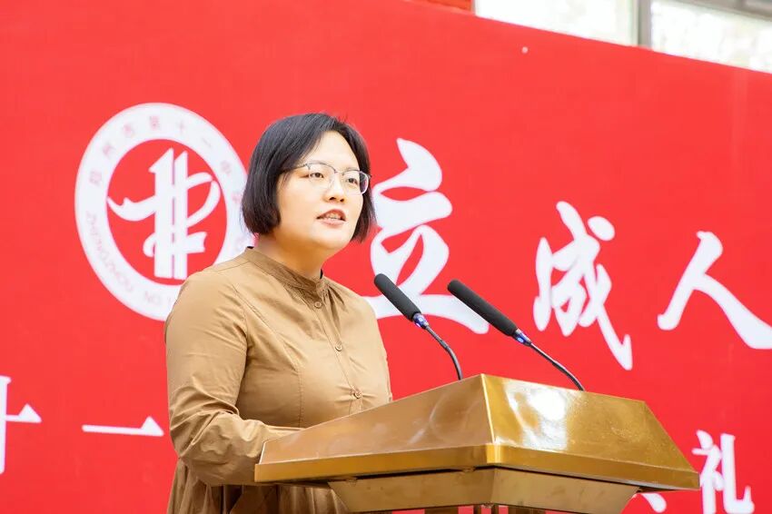 教师代表敬小娟登台寄语。她说,十八岁不是数字的累加,而是责任的觉醒。成年,意味着为自己的选择负责;65天后的高考,便是成年后的第一场大考。她鼓励同学们与焦虑和解,把目光收回当下,踏实走好每一天。独立不是孤军奋战,父母和师长永远是你们的底牌。她希望同学们接纳不完美的自己,活成最真实、最舒展的模样,带着十一中的烙印与骨子里的倔强,去赴这场青春之约。