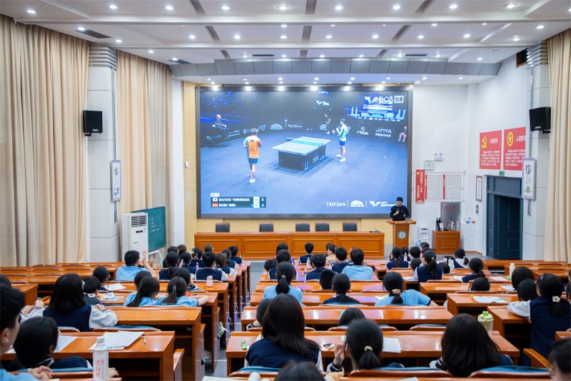 4月12日,郑州11中组织师生共同观看WTT太原挑战赛,校乒乓球队教练张旭现场解说,全校师生共同见证校友温瑞博夺冠的荣耀时刻。